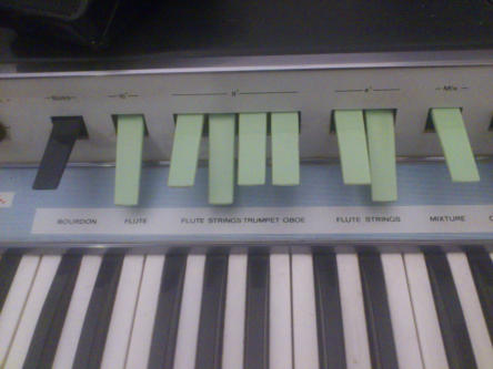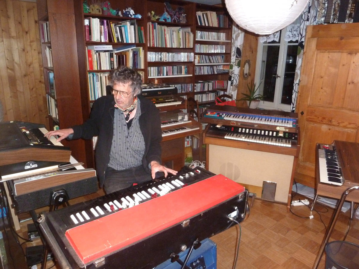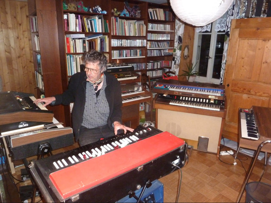 Au premier plan, le célèbre Vox Continental Duo branché sur un ampli Farfisa 40 watts d’époque, de la main gauche je joue sur un Gen Brio, posé sur un Farfisa Matador, derrière moi, un Galanti Clipper R6 posé sur un Continental UFO posé sur un Philips Philicorda en meuble. Au fond à droite un Hohner Symphony 33 sur lequel il y a un Gem Rodeo, sur la droite devant, un Antonelli solista. Cette photo date un peu car maintenant mon salon est plein presque jusqu’au plafond en effet, j’en possède une cinquantaine... Et je me suis spécialisé dans les orgues rares genre Paolo Soprani ou bien ET3 de Vermona car chaque orgue a un son spécifique et m’amène une nouvelle composition, un nouveau morceau qui m’est littéralement imposé! En tapant Hohner symphonic 33 sur youtube, on peut me voir faire la démo d’un de mes orgues. http://www.youtube.com/watch?v=GYi7QXWDTgI