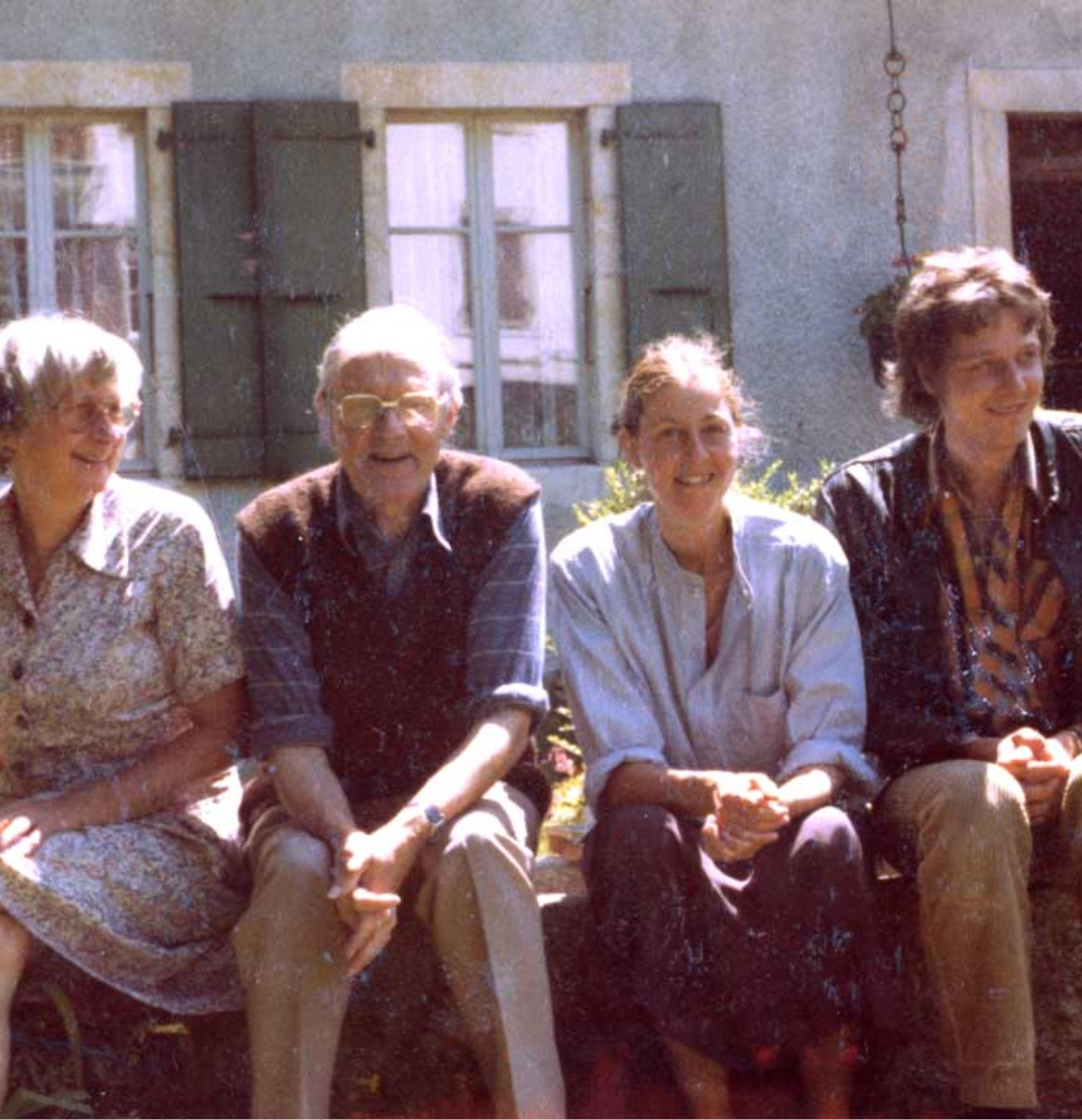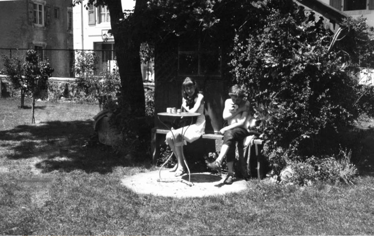 Willy Monthoux, mon père et sa soeur Misette dans le jardin, qui est toujours